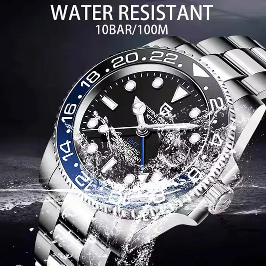 PAGANI DESIGN PD-1758 Japan NH34 GMT Watch Sapphire Glass Automatic Watch 100M Waterproof Stainless Men Mechanical Watch