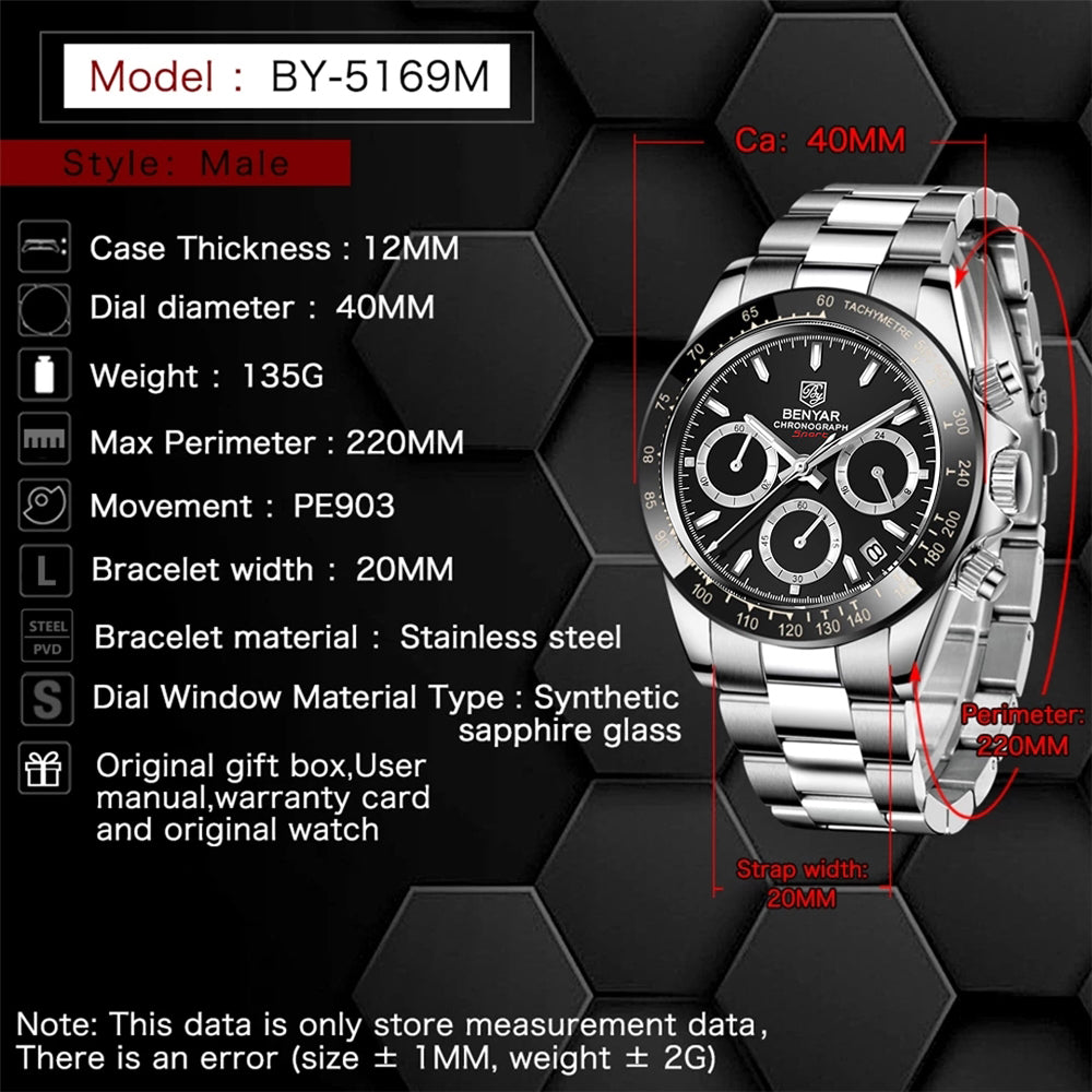 Discover Timeless Style and Precision with the BENYAR 5169 Men's Chronograph Watch