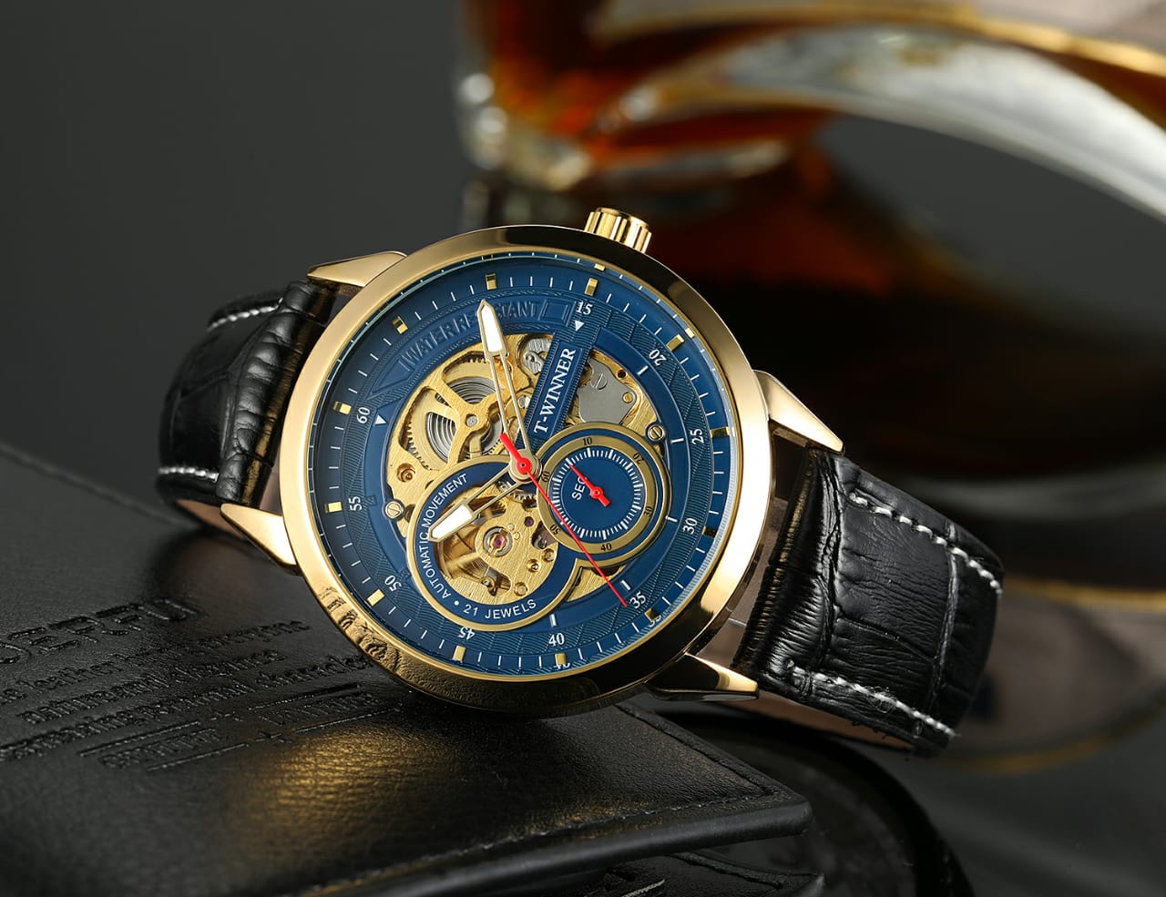 Experience ultimate luxury with the Forsining Winner Blue Skeleton Automatic Mechanical Watch, designed for the modern man who values style, elegance, and precision.