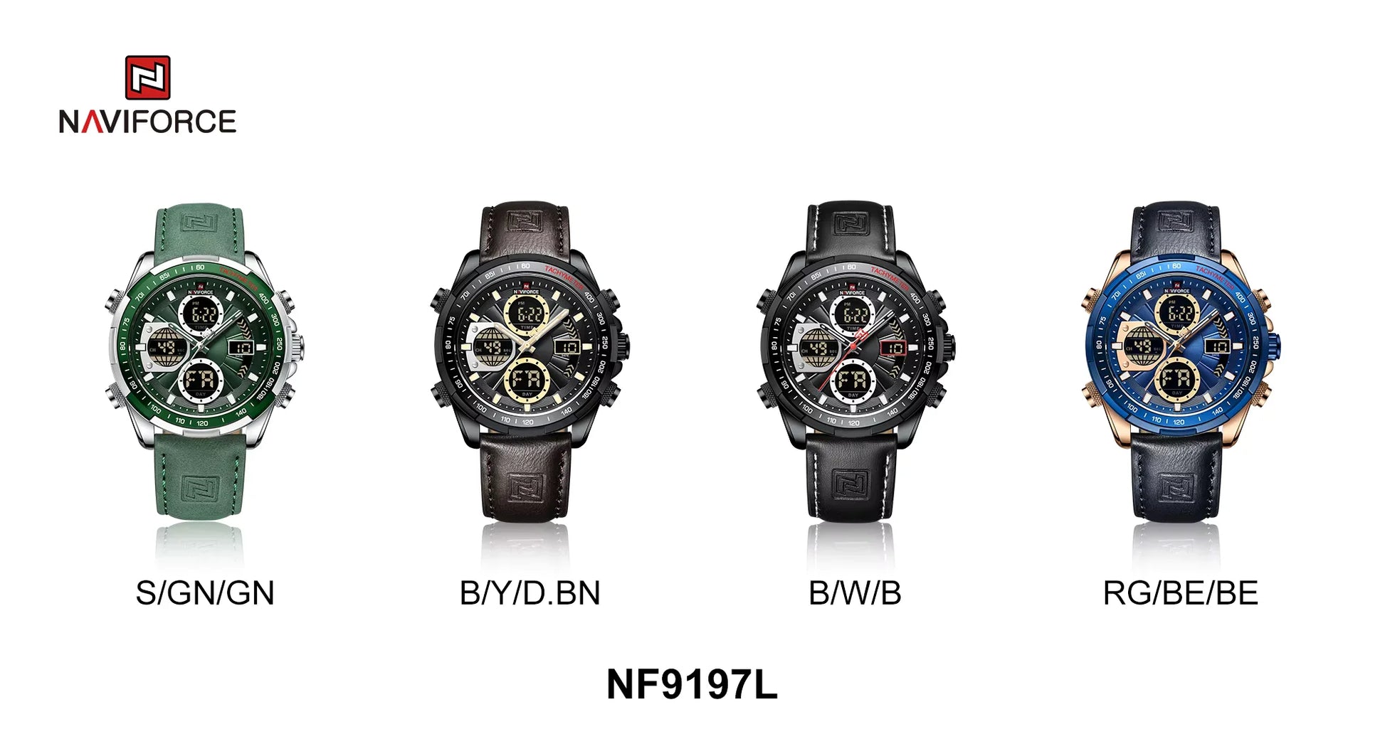 NAVIFORCE 9197L Men's Military Watch – Analog Digital Display, Waterproof, Leather Strap, Alarm & Calendar